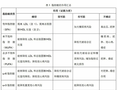 下表列出了2010聯(lián)合國糧農(nóng)組織出版的《脂肪、脂肪酸與人類營養(yǎng)》的關于脂肪酸的作用總結(總結了最近多年的研究結果)