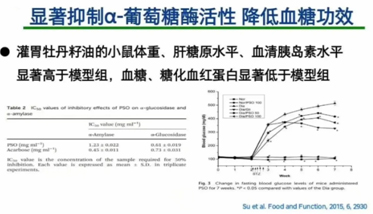 同時牡丹籽油具有良好的較低四氧嘧啶誘導(dǎo)的糖尿病小鼠高血糖作用,且呈現(xiàn)一定的量效關(guān)系,且對正常小鼠的糖耐量有一定的調(diào)節(jié)作用,實驗結(jié)果表明牡丹籽油具有良好的食用保健價值。