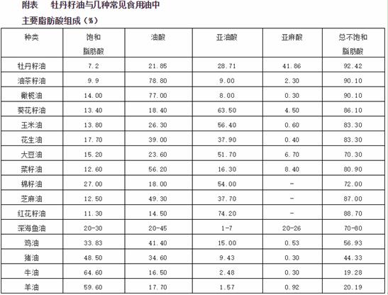 附表 牡丹籽油與幾種常見食用油中