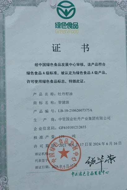 喜訊 | 熱烈祝賀中資國業(yè)「牡丹籽油」通過“綠色食品”認(rèn)證 。
