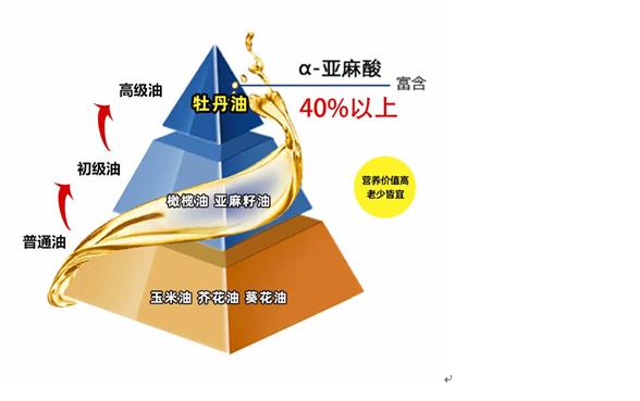 牡丹籽油不飽和脂肪酸達(dá)到90%以上,其中,α-亞麻酸高達(dá)42%,居各類油脂之首。