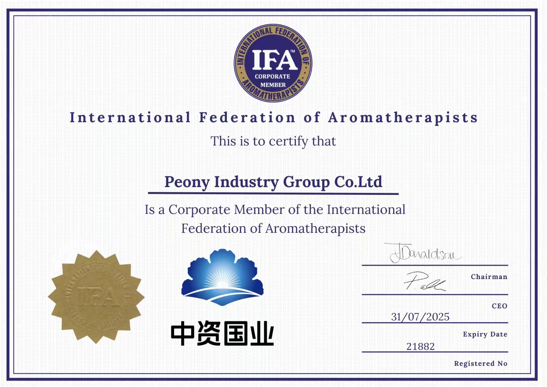 中資國(guó)業(yè)亦取得了擁有近40年歷史的芳療行業(yè)權(quán)威機(jī)構(gòu)——IFA國(guó)際芳療的認(rèn)可,成為IFA國(guó)際芳療企業(yè)會(huì)員,象征著在國(guó)際上開(kāi)出屬于中國(guó)民族的一朵花。