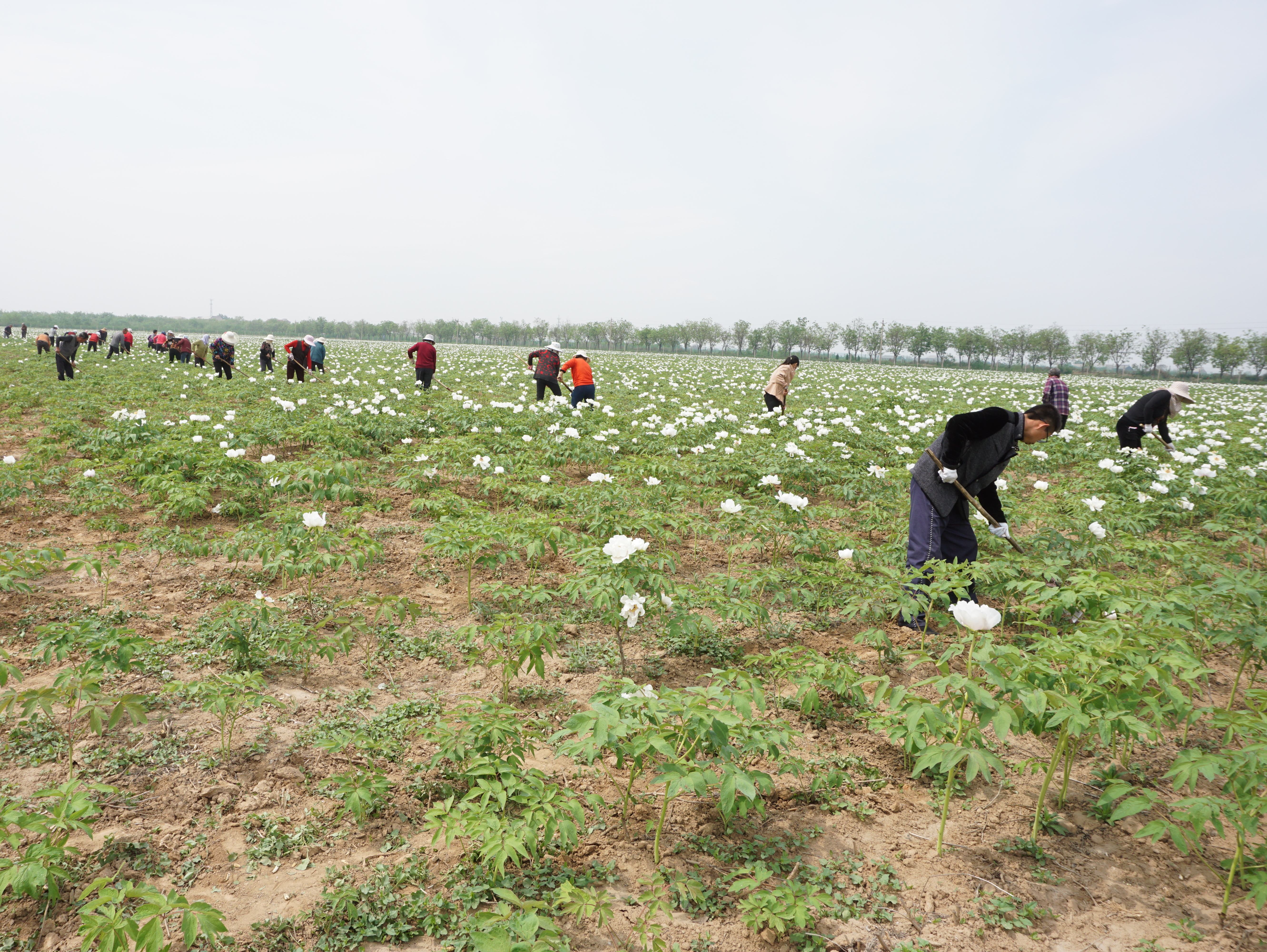 (人們正在牡丹田里除草)