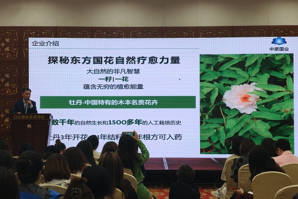 此次大會現(xiàn)場,中資國業(yè)為參會者展示、講解了多款牡丹產(chǎn)品及其功效,并沖泡了每株僅取一朵花制成的牡丹全花茶,其獨特香味吸引了很多人前來體驗,獲得大家的喜愛和一致好評。