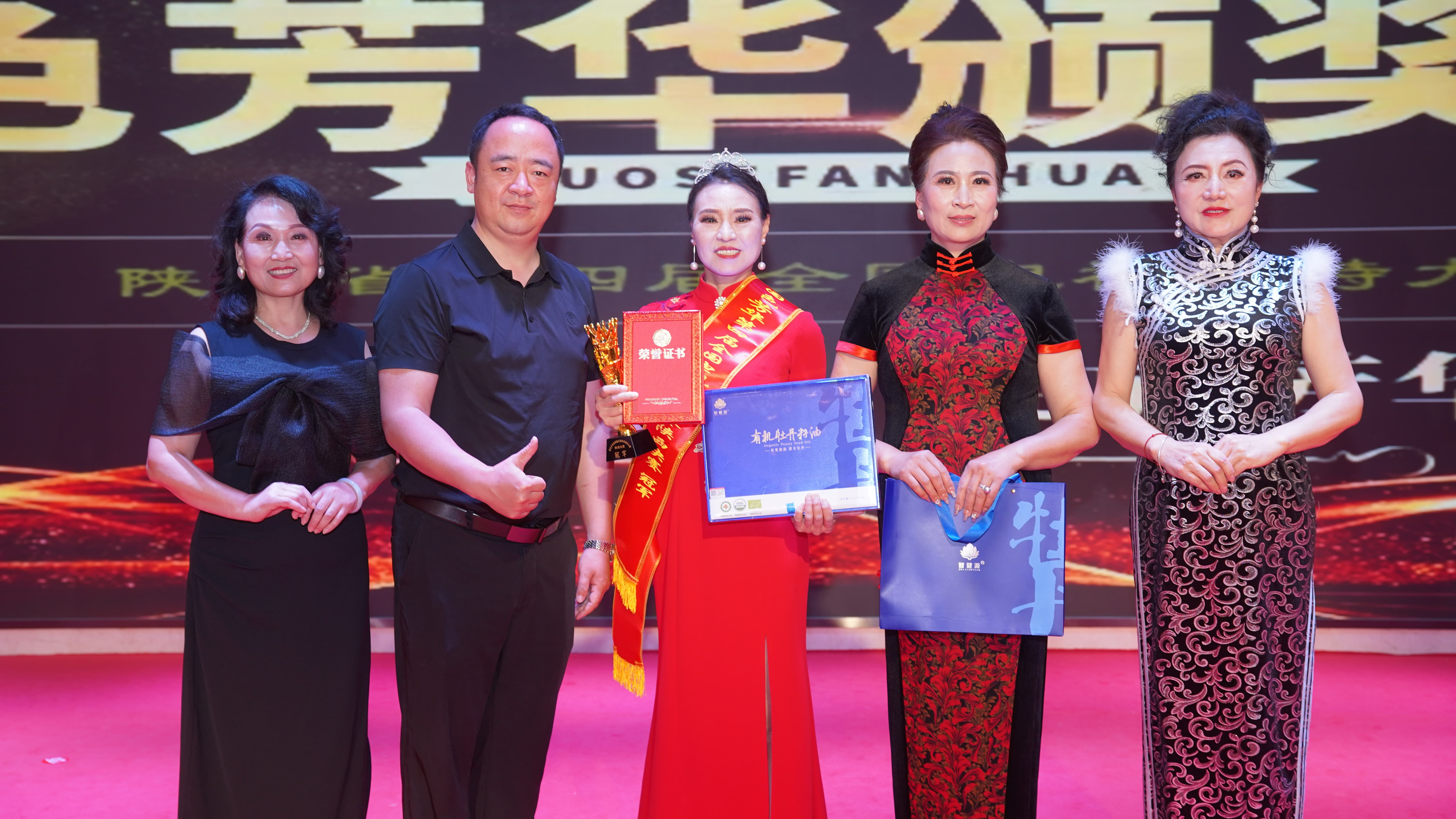 在牡丹盛放的同時(shí),第四屆“國色芳華·全國電視模特大賽”總決賽也在陜西合陽隆重舉行。此次賽事由中資國業(yè)牡丹產(chǎn)業(yè)集團(tuán)有限公司贊助,為比賽精心準(zhǔn)備了多份有機(jī)綠色、營養(yǎng)健康的智健源有機(jī)牡丹籽油禮盒作為獲獎(jiǎng)獎(jiǎng)品。