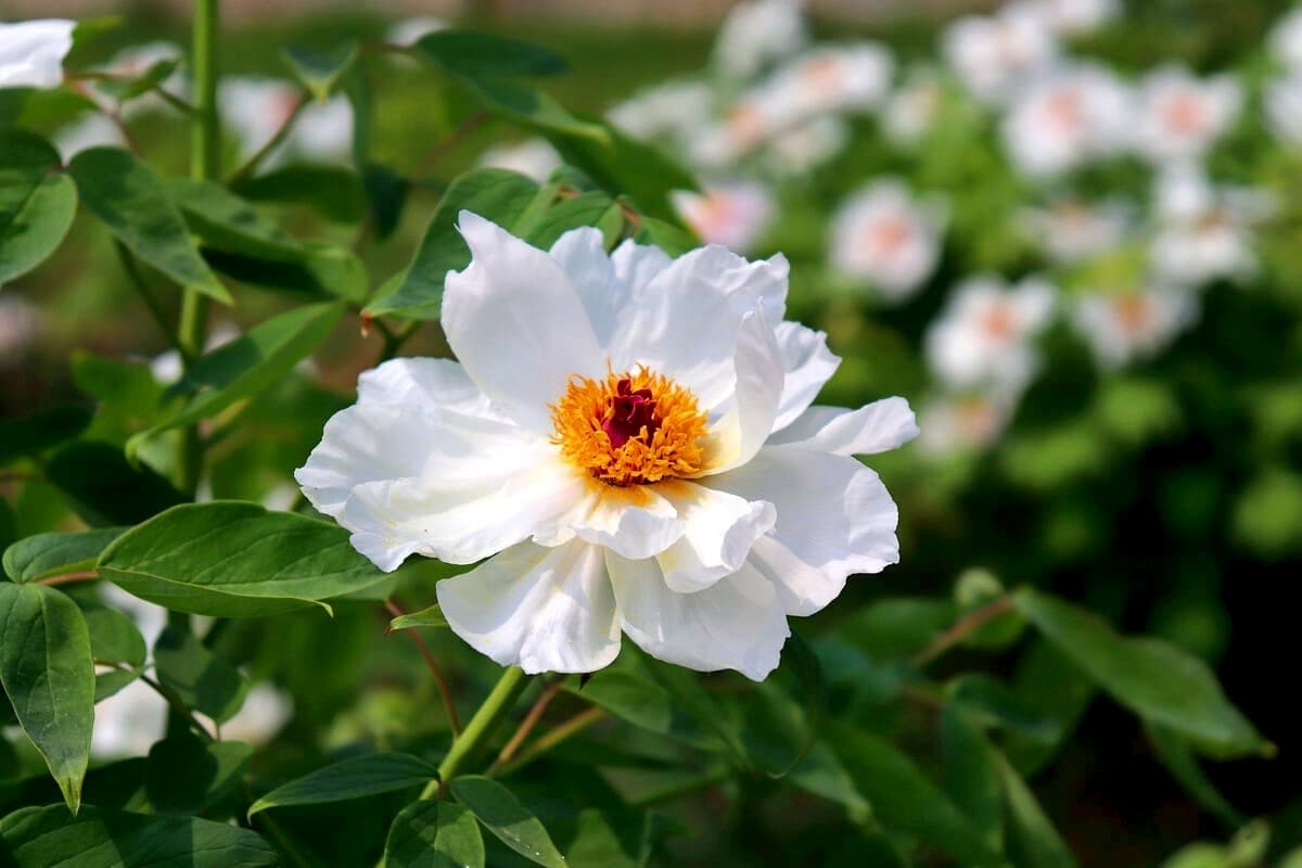 鳳丹牡丹在我國牡丹品種中,是最為特殊的存在,它是自然界中最原始的牡丹樣本,擁有超過1600年的悠久栽培歷史,花型為優(yōu)雅的白色單瓣。